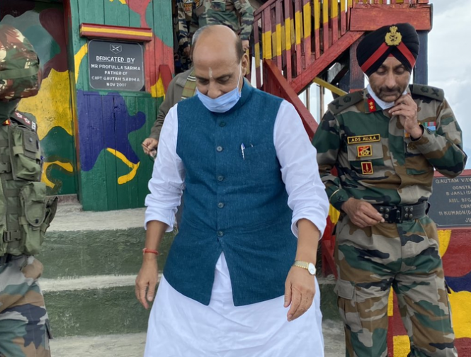 रक्षा मंत्री राजनाथ सिंह का लद्दाख और जम्मू-कश्मीर दौरे का आज दूसरा दिन है। राजनाथ सिंह ने चीफ ऑफ डिफेंस स्टाफ (सीडीएस) जनरल बिपिन रावत, सेना प्रमुख नरवणे व अन्य अधिकारियों के साथ बाबा बर्फानी के दर्शन किए। इसके बाद रक्षा मंत्री राजनाथ सिंह कुपवाड़ा जिले में नियंत्रण रेखा के पास सेना की एक अग्रिम पोस्ट पर पहुंचे। इस दौरान उन्होंने जवानों के बातचीत की और उनका मनोबल बढ़ाया।