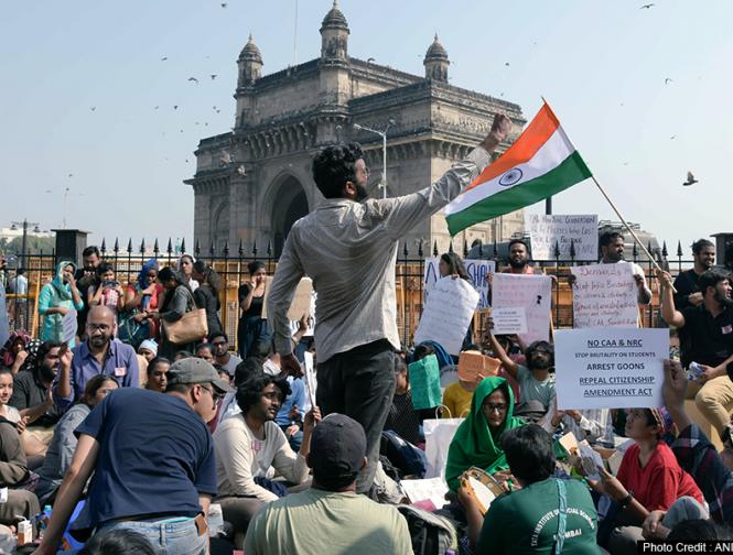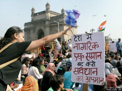 रविवार आधी रात को दक्षिण मुम्बई के कोलाबा में गेटवे ऑफ इंडिया के सामने बड़ी संख्या में छात्रों और महिलाओं सहित बड़ी संख्या में लोग जमा हुए थे।