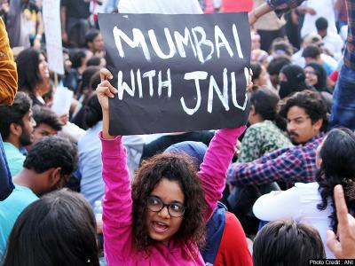 हाथों में टैम्बोरिन और गिटार लिए तथा क्रांति के गीत गाते प्रदर्शनकारियों ने जेएनयू में हुए हमले के विरोध में गेटवे ऑफ इंडिया और ताज महल पैलेस होटल के बाहर रातभर प्रदर्शन किया।