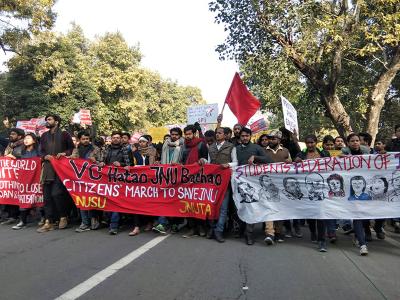 JNU Protest: हजारों की संख्या में छात्रों और शिक्षकों ने निकाला पैदल मार्च, देखिए प्रदर्शन की तस्वीरें