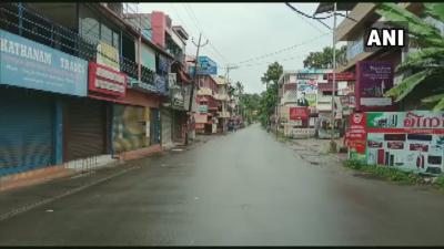 केरल के कोट्टायम में लॉकडाउन के दौरान एट्टुमानूर शहर की सड़कें सुनसान और दुकानें बंद दिखी। कोरोना के बढ़ते मामलों के मद्देनज़र एट्टुमानूर शहर में एक दिन का लॉकडाउन किया गया है।