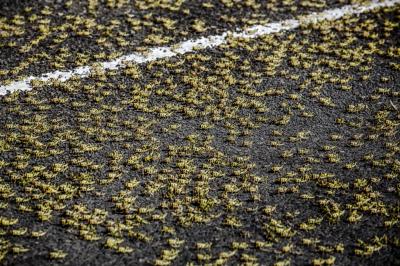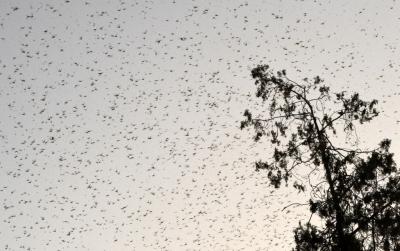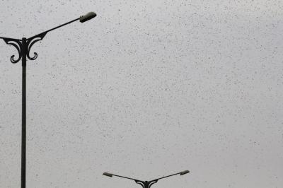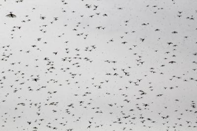 यहां कई अलग-अलग जगहों पर आसमान में टिड्डियों का जाल सा छा गया था।