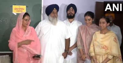 शिरोमणि अकाली दल के अध्यक्ष सुखबीर सिंह बादल ने परिवार के साथ फिरोजपुर लोकसभा क्षेत्र के अंतर्गत बादल गांव में एक मतदान केंद्र पर अपना वोट डाला।