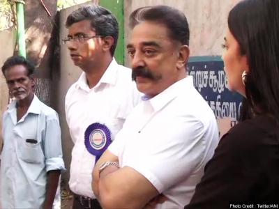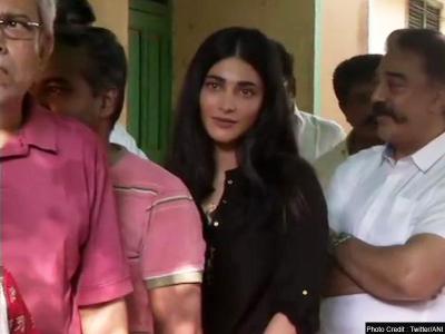 कमल हासन अपने बेटी श्रुति हासन के साथ मतदान करने के लिए पहुंचे।