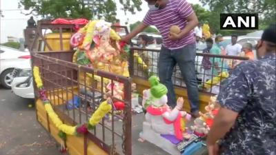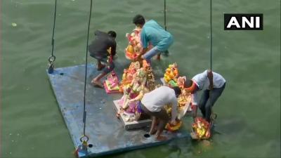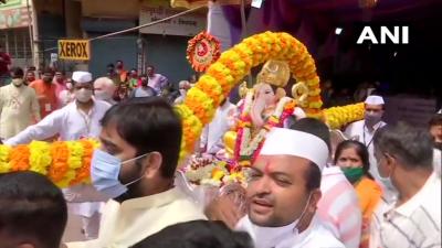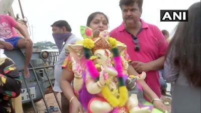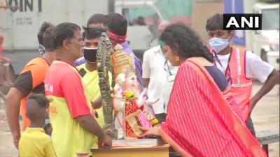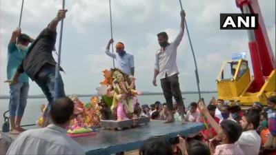महाराष्ट्र में कोरोना वायरस महामारी के मद्देनजर बेहद साधारण तरीके से गणपति प्रतिमाओं का मंगलवार को विसर्जन किया गया।