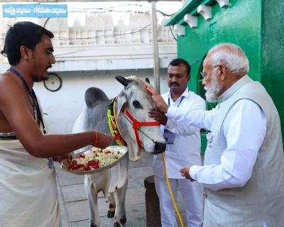 LS polls 2024: प्रधानमंत्री नरेन्द्र मोदी ने गौ माता की पूजा की।