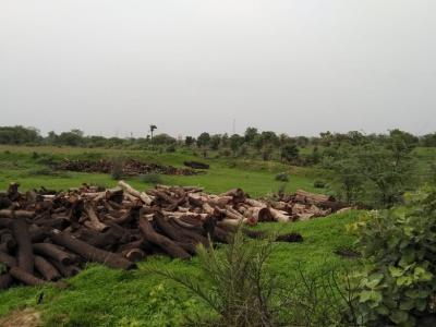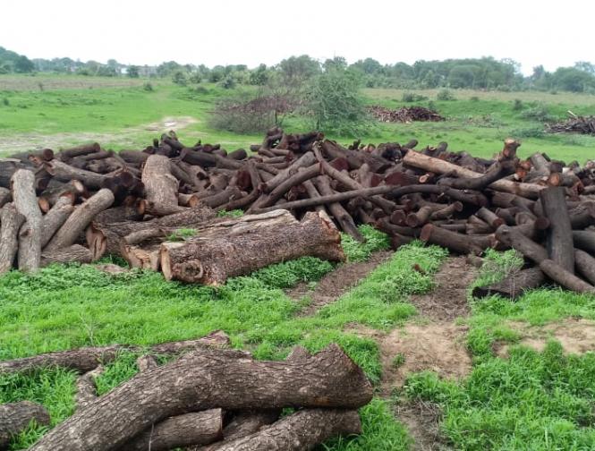 स्थल पर दो हजार क्विंटल से ज्यादा लकड़ी पडी हुई है।जमीन जिस पर वृक्ष काटे गए हैं वह करीब 106 बीघा के लगभग है।इसमें से काफी जमीन पर खेती नहीं होती है।