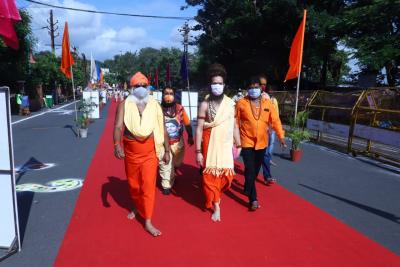 आशीष सिंह कलेक्टर एवं अध्यक्ष श्री महाकालेश्वर मंदिर प्रबंध समिति, मनोज सिंह पुलिस अधीक्षक, महानिर्वाणी अखाडे के गादीपति महंत विनीत गिरी जी महाराज ने पूजन किया।