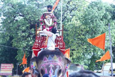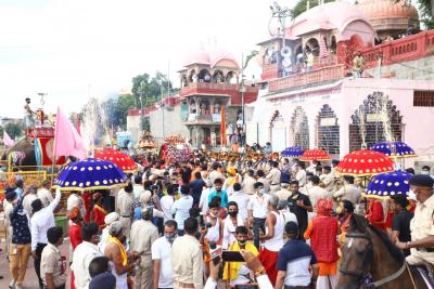 संपूर्ण सवारी मार्ग रंग बिरंगे कारपेट से सुसज्जित होकर रंग बिरंगे ध्वजों से आच्छादित व उत्कृष्ट रंगोली से सजाया गया था। सवारी में सुन्दर रंग बिरंगी छत्रियां आकर्षण का केन्द्र थी।