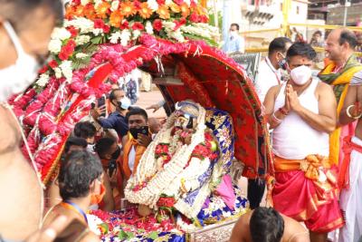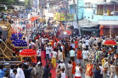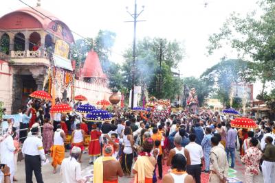 पूजन के उपरांत जैसे ही पालकी मुख्य प्रवेश द्वार पर पहुंची सशस्त्र पुलिस बल के जवानों द्वारा सलामी दी गई। सवारी में भगवान ने भक्तजनों को चन्द्रमौलेश्वर स्वरूप एवं मनमहेश स्वरूप में दर्शन दिये।