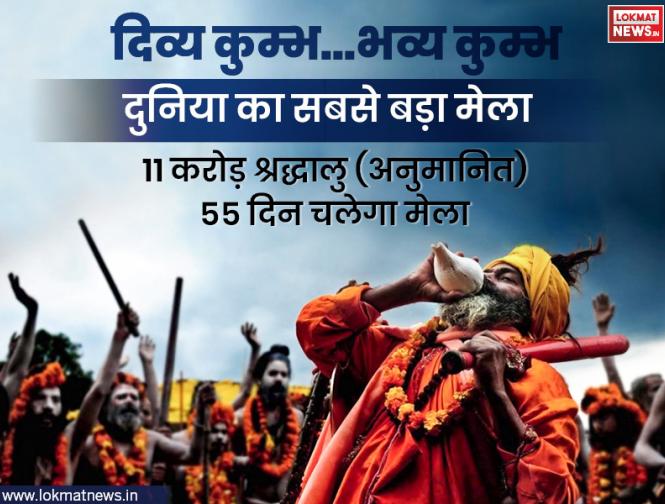 दिव्य कुम्भ...भव्य कुम्भ दुनिया का सबसे बड़ा मेला 11 करोड़ श्रद्धालु (अनुमानित) 55 दिन चलेगा मेला