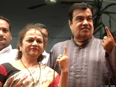 केंद्रीय मंत्री नितिन गडकरी ने अपनी पत्नी कंचन के साथ नागपुर में डाला वोट