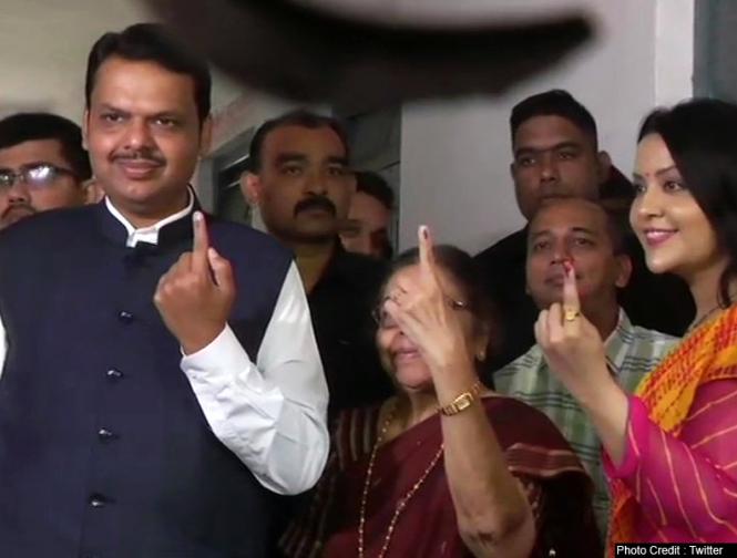देवेंद्र फड़नवीस ने पत्नी संग डाला वोट