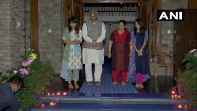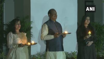 लोकसभा अध्यक्ष ओम बिरला ने परिवार के साथ दीपक जलाए।