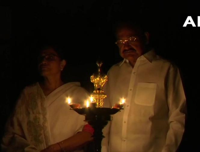 उपराष्ट्रपति वैंकेया नायडू ने अपनी पत्नी के साथ जलाये दीये।