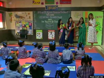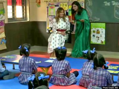 मेलानिया ट्रंप नानकपुरा दिल्ली के एक सरकारी स्कूल में पहुंची हैं।