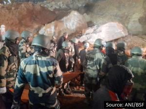 1 / 4मिजोरम के हनहथियाल जिले के मौदरह गांव में घटनास्थल से अब तक आठ शव बरामद किए गए हैं।2 / 4बीएसएफ की रेस्क्यू टीम को फौरन रवाना किया गया और फर्स्ट रिस्पांस यूनिट के तौर पर पहुंची।3 / 4मंगलवार सुबह मौके पर पहुंची एनडीआरएफ की टीम चार और लोगों के लिए तलाशी अभियान कर रही है।4 / 4हनहथियाल के पुलिस अधीक्षक विनीत कुमार ने बताया था कि यह हादसा सोमवार अपराह्न तीन बजे हुआ, जब एबीसीआई इंफ्रास्ट्रक्चर प्राइवेट लिमिटेड के श्रमिक जिले के मौदढ़ गांव में स्थित पत्थर की इस खदान में काम कर रहे थे। उन्होंने कहा था कि हादसे के समय 13 श्रमिक खदान में काम कर रहे थे, जिनमें से एक बाहर निकलने में सफल हो गया, जबकि बाकी 12 अन्य मलबे में फंस गए।