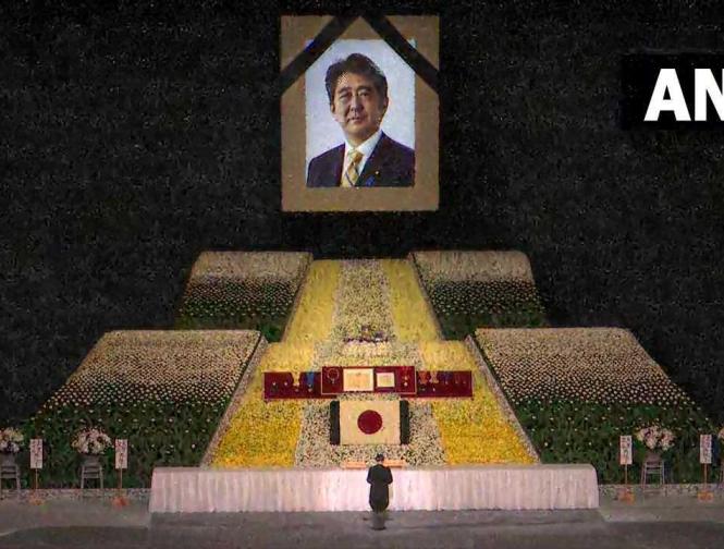 प्रधानमंत्री नरेंद्र मोदी ने जापान के पूर्व प्रधानमंत्री शिंजो आबे के राजकीय अंतिम संस्कार में हिस्सा लेने के लिए टोक्यो में हैं। प्रधानमंत्री मोदी ने आबे के निधन पर गहरी संवेदना व्यक्त की और भारत-जापान साझेदारी को मजबूत करने के साथ-साथ एक मुक्त, खुले व समावेशी हिंद-प्रशांत क्षेत्र के लिए आबे के योगदान को याद किया। (Photo ANI)