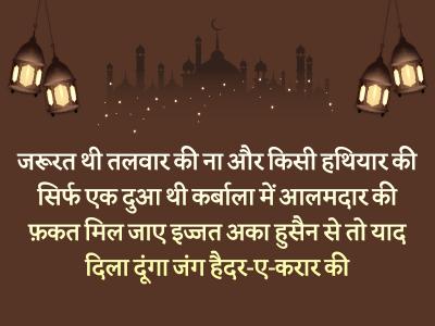 जरूरत थी तलवार की ना और किसी हथियार की सिर्फ एक दुआ थी कर्बाला में आलमदार की फ़कत मिल जाए इज्जत अका हुसैन से तो याद दिला दूंगा जंग हैदर-ए-करार की