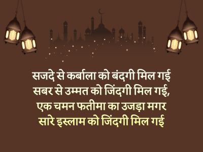 सजदे से कर्बाला को बंदगी मिल गई सबर से उम्मत को जिंदगी मिल गई, एक चमन फतीमा का उजड़ा मगर सारे इस्लाम को जिंदगी मिल गई