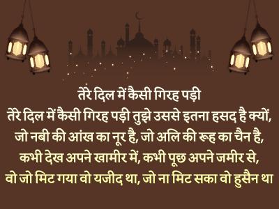 फिर आज हक के लिए, फिर आज हक के लिए जान फिदा करे कोई वफा भी झूम उठे यूं, वफा करे कोई, नमाज 1400 सालों से इंतजार में है, हुसैन की तरह मुझ को अदा करे कोई