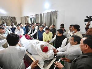 1 / 6समाजवादी पार्टी के पूर्व राष्ट्रीय अध्यक्ष मुलायम सिंह यादव के पार्थिक शरीर आज राजकीय सम्मान के साथ उनके पैतृक गांव सैफई में अंतिम संस्कार किया जाएगा। (फोटो: Twitter)2 / 6मुलायम सिंह को अंतिम विदाई देने कई तमाम दिग्गज नेता उनके पैतृक गांव सैफई पहुंचे है। (फोटो: Twitter)3 / 6सपा के वरिष्ठ नेता आजम खान ने मुलायम सिंह के पार्थिव शरीर के अंतिम दर्शन करने पहुंचे। (फोटो: Twitter)4 / 6आजम खान के पहुंचते ही मुलायम सिंह का पूरा परिवार भावुक हो गया। उनके साथ उनके बेटे अब्दुल्ला आजम भी थे। (फोटो: Twitter)5 / 6सीएम योगी आदित्यनाथ भी भाजपा प्रदेश अध्यक्ष भूपेंद्र सिंह चौधरी और अन्य वरिष्ठ नेताओं के साथ मुलायम सिंह को श्रद्धांजलि अर्पित करने पहुंचे। (फोटो: Twitter)6 / 6मुलायम सिंह यादव ने 82 साल की उम्र में गुरुग्राम के मेदांता अस्पताल में आखिरी सांस ली। (फोटो: Twitter)