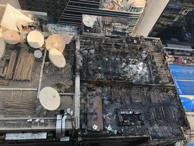 आग सबसे पहले 1-अबव रेस्तरां में लगी। इसका बांस और प्लास्टिक से बना शेड जलने लगा। यह आग फिर दूसरे बिल्डिंग में मौजूद दो बारों-मोज