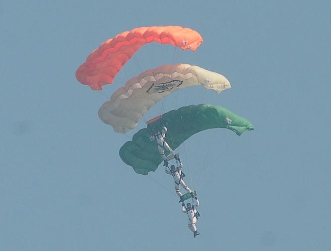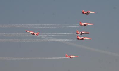 विशेष समारोह के दौरान उपस्थित नागरिक आसमान में विमान और हेलीकॉप्टर की इन हैरतअंगेज कलाबाजियों को देखकर दांतों तले उंगलियां दबाने लगे।