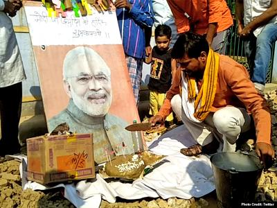 पीएम मोदी के जन्मदिन के लिए जगह-जगह केक काटे गए और हवन पूजन भी हुआ