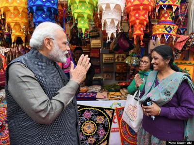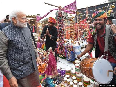 सूत्रों के मुताबिक मोदी दिन में करीब डेढ़ बजे इंडिया गेट के निकट राजपथ पर लगे ‘हुनर हाट’ में पहुंचे और वहां लगभग 50 मिनट तक रहे।