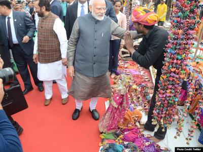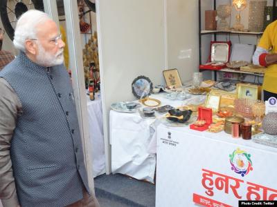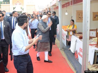 मोदी ने विभिन्न स्टॉल पर जाकर उत्पादों को देखा और उनके बारे में जानकारी ली। प्रधानमंत्री पहली बार किसी हुनर हाट में पहुंचे।