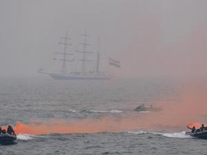1 / 9भारतीय नौसेना ने रविवार को यहां नौसेना दिवस के अवसर पर अभियानगत प्रदर्शन कर शानदार युद्ध कौशल का प्रदर्शन किया। राष्ट्रपति और सैन्य बल की सर्वोच्च कमांडर द्रौपदी मुर्मू यहां रामकृष्ण बीच पर आयोजित कार्यक्रम में मुख्य अतिथि थीं।2 / 9यह पहली बार था जब नौसेना दिवस नयी दिल्ली के बाहर मनाया गया। पनडुब्बी आईएनएस सिन्धुकीर्ति और पोत आईएनएस तरंगिनी पर सवार नाविकों ने राष्ट्रपति का शानदार स्वागत किया।3 / 9नौसेना के कमांडो ने सी किंग हेलीकॉप्टर से प्रदर्शन किया, जिसके बाद मार्कोस (मरीन कमांडो) ने युद्ध कौशल दिखाते हुए एक बचाव अभियान के साथ ‘ऑयल रिग’ (समुद्र से तेल निकालने के लिए बना ढांचा) को ध्वस्त कर दिया। हॉक विमान के साथ मिग-29 के विमानों ने भी प्रदर्शन दिखाए।4 / 9नौसेना के युद्धपोत मिसाइल कार्वेट आईएनएस खंजर, आईएनएस कदमत्त और आईएनएस किर्च, डिस्ट्रॉयर आईएनएस दिल्ली, फ्रिगेट आईएनएस सह्याद्री और डिस्ट्रॉयर आईएनएस कोच्चि का प्रदर्शन किया गया। एक खोज और बचाव अभियान का प्रदर्शन भी किया गया जिसमें कमांडो नौसेना के चेतक और उन्नत हल्के हेलीकाप्टर एएलएच मच-3 से नीचे उतरे और मिशन को अंजाम दिया।5 / 9कार्यक्रम के तहत नौसेना के विमानों द्वारा फ्लाई-पास्ट के साथ, युद्धपोतों से रॉकेट दागे गए। स्काइडाइवर अनूप सिंह ने एक विमान से कूदने के प्रदर्शन के बाद राष्ट्रपति को ‘भारतीय नौसेना का इतिहास’ पुस्तक भेंट की।6 / 9प्रसिद्ध संगीतकार तिकड़ी शंकर-एहसान-लॉय द्वारा रचित और प्रसिद्ध गीतकार प्रसून जोशी द्वारा लिखित, भारतीय नौसेना पर तैयार गीत को इस अवसर पर जारी किया गया।7 / 9नौसेना प्रमुख एडमिरल आर हरि कुमार, केंद्रीय पर्यटन मंत्री जी किशन रेड्डी, रक्षा राज्य मंत्री अजय भट्ट और अन्य ने इस कार्यक्रम में भाग लिया।8 / 9राष्ट्रपति ने डिजिटल तरीके से कुरनूल जिले में ‘नेशनल ओपन एयर रेंज’ और कृष्णा जिले के निम्मकुरु में भारत इलेक्ट्रॉनिक्स लिमिटेड की एडवांस नाइट विजन प्रोडक्ट्स फैक्टरी का उद्घाटन किया।9 / 9राष्ट्रपति ने 925 करोड़ रुपये से अधिक की राष्ट्रीय राजमार्ग (एनएच) परियोजनाओं का भी उद्घाटन किया, जिसमें एनएच-340 के रायचोटी-अंगल्लू खंड, एनएच-205 पर चार-लेन के रोड-ओवर-ब्रिज का काम शामिल है। मुर्मू ने राज्य के आदिवासी क्षेत्रों में चार एकलव्य मॉडल आवासीय विद्यालयों का भी उद्घाटन किया।