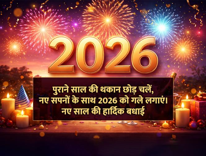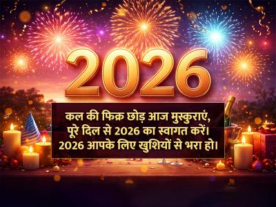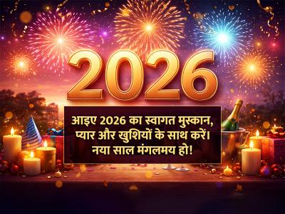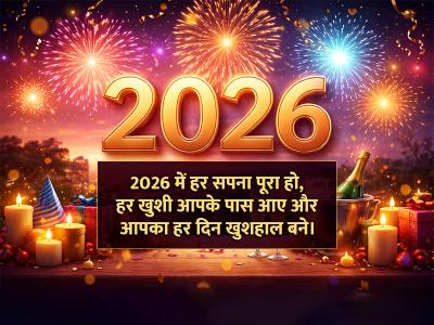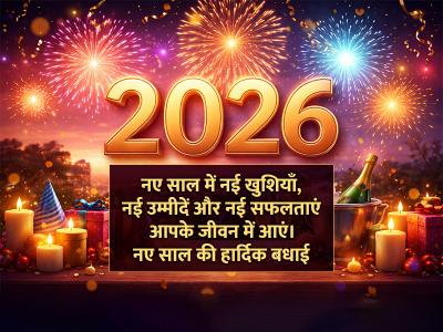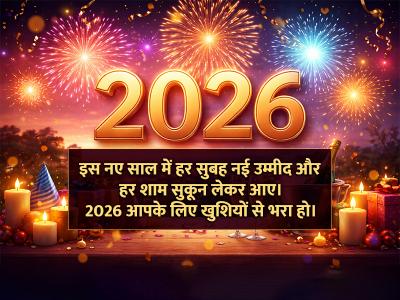 नए साल में नई खुशियाँ, नई उम्मीदें और नई सफलताएं आपके जीवन में आएं। 2026 की हार्दिक शुभकामनाएं!