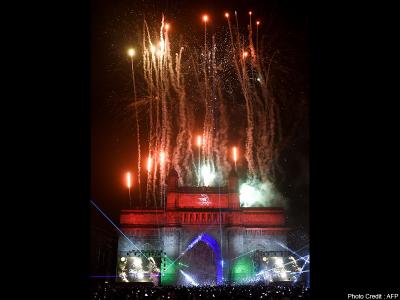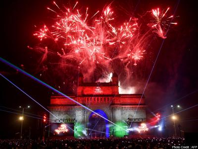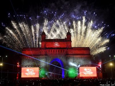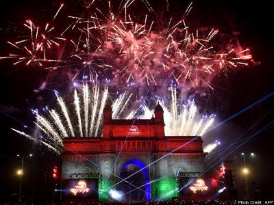 भारत में मुंबई के गेटवे ऑफ़ इंडिया पर जमकर आतिशबाजी की गई।