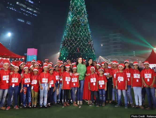 नीता और ईशा अंबानी ने एनजीओ के बच्चों के साथ ब्रांद्रा स्थित जियो वर्ल्ड गार्डन में क्रिसमस सेलिब्रेट किया।
