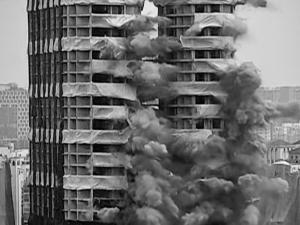 1 / 7नोएडा के सेक्टर-93-ए में सुपरटेक के करीब 100 मीटर ऊंचे अवैध ट्विन टावर को रविवार दोपहर नियंत्रित विस्फोटकों की मदद से ढहा दिया गया। (फोटो: Twitter)2 / 7इसे गिराने में करीब 3700 किलो विस्फोटकों का इस्तेमाल किया गया। (फोटो: Twitter)3 / 7इन विस्फोटकों को इमारतों में करीब 7,000 छेदों रखा गया था। इन सबमें एक साथ विस्फोट के लिए 20,000 सर्किट बनाए गए थे। (फोटो: Twitter)4 / 7 इमारत को ढहाए जाने से पहले चेतावनी के लिए सायरन बजाया गया। इसके बाद ट्रिगर की मदद से इसे गिराया गया। (फोटो: Twitter)5 / 7इससे पहले रविवार सुबह तक ट्विन टावर के पास स्थित दो सोसाइटी में रह रहे कम से कम 5,000 लोगों को निकालने का काम पूरा कर लिया गया था। साथ ही रसोई गैस और बिजली की आपूर्ति बंद कर दी गई थी। (फोटो: Twitter)6 / 7ध्वस्तीकरण के मद्देनजर ट्विन टावर के आसपास के लगभग 500 वर्ग मीटर के क्षेत्र को वर्जित क्षेत्र में तब्दील कर दिया गया है, जहां किसी भी इंसान, वाहन या जानवर को जाने की अनुमति नहीं थी। (फोटो: Twitter)7 / 7सुप्रीम कोर्ट के आदेश के बाद से इसे ढहाए जाने की तैयारी लंबे समय से चल रही थी। (फोटो: Twitter)