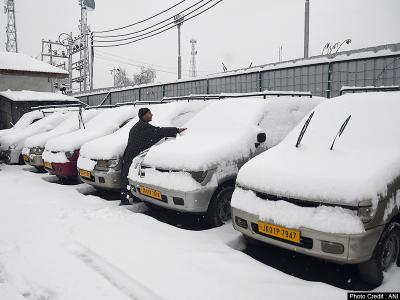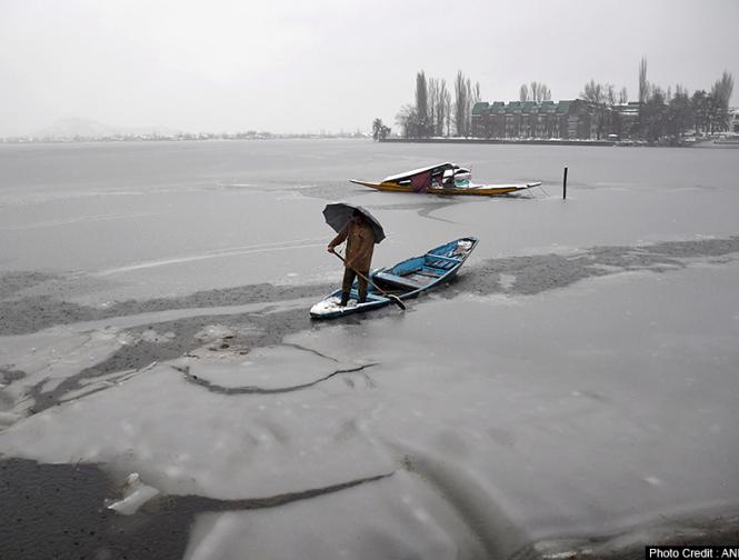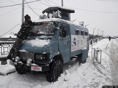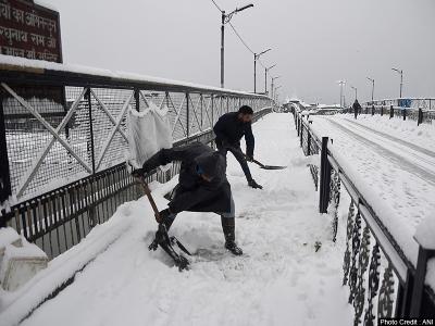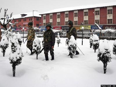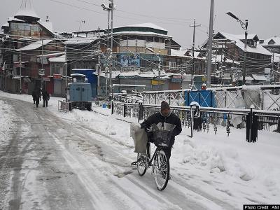 श्रीनगर में बर्फबारी से सामान्य जनजीवन प्रभावित, देखें तस्वीरें