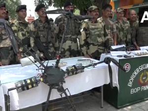 1 / 6कठुआ के पानसर में BSF की पेट्रोलिंग टीम को एक हैक्सा कॉप्टर मूव करता दिखा। इसे फायर कर गिराया गया। उसमें से एक M4 US मेड हथियार सेमी ऑटोमैटिक कारबाइन, 60राउंड, 2मैग्ज़ीन, 7ग्रेनेड मिले हैं। कॉप्टर का वजन 17-18Kg है और 5 से साढ़े 5Kg का पे लोड ले जा रहा था।2 / 6बीएसएफ के एक गश्ती दल ने सुबह करीब पांच बजकर 10 मिनट पर सीमा चौकी पंसार के क्षेत्र में आसमान में एक ड्रोन को मंडराते देखा। उन्होंने बताया कि बीएसएफ जवानों ने नौ गोलियां चलाई और ड्रोन को भारतीय क्षेत्र में 250 मीटर अंदर की ओर मार गिराया।3 / 6जम्मू कश्मीर के कठुआ जिले में अंतरराष्ट्रीय सीमा पर सीमा सुरक्षा बल (बीएसएफ) ने शनिवार को आधुनिक राइफल और कुछ छोटे बमों से लैस पाकिस्तान के एक ड्रोन को मार गिराया। अधिकारियों ने यह जानकारी दी। जम्मू क्षेत्र में यह पहली ऐसी घटना है जब बीएसएफ ने हथियारों और विस्फोटकों से लैस ड्रोन को मार गिराया है। इसके साथ ही ड्रोन के जरिए केंद्र शासित प्रदेश में हथियारों की तस्करी करने की पाकिस्तान की कोशिश नाकाम कर दी गई है।4 / 6अधिकारियों ने बताया कि अधिकारियों ने प्रारंभिक सूचना देते हुए कहा कि ड्रोन में एक अत्याधुनिक राइफल, दो मैगजीन, 60 गोलियां और सात छोटे बम रखे गए थे जिन्हें पाकिस्तानी एजेंटों को देना था। उन्होंने बताया कि ऐसा माना जा रहा है कि पंसार सीमा चौकी के सामने अग्रिम चौकियों पर तैनात पाकिस्तानी रेंजर ड्रोन को नियंत्रित कर रहे थे। 5 / 6अधिकारियों ने बताया कि पाकिस्तानी रेंजर्स ने सुबह करीब आठ बजकर 50 मिनट पर हीरानगर सेक्टर में बबिया चौकी पर गोलियां चलाईं। अंतरराष्ट्रीय सीमा पर तैनात बीएसएफ ने जवाबी कार्रवाई नहीं की। स्थिति पर करीबी नजर रखी जा रही है।6 / 6पुलिस से मिली जानकारी के अनुसार यह घटना सुबह 5.10 बजे के करीब घटित हुई है। जब बीएसएफ जवान सीमा पर गश्त लगा रहे थे तो उन्होंने पाकिस्तानी ड्रोन को रथुआ में गांव पंसर पर मंडराते हुए देखा। जैसे ही ड्रोन ने भारतीय सीमा में प्रवेश किया। सतर्क बीएसएफ जवानों ने उसे गोली मारकर गिरा दिया।