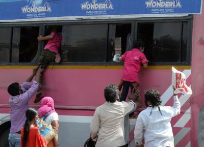 कुछ लोग अपने बच्चों को बसों की खिड़कियों से अंदर घुसाते देखे गए।