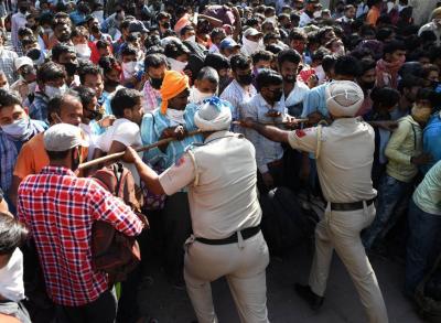 भीड़ के पहुंचने के बाद पुलिस को उन्हें संभालने के काफी मुश्किलों का सामना करना पड़ा।