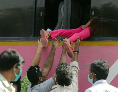 बच्चों को लोगों ने खिड़की से ही बसों में चढ़ा दिया।