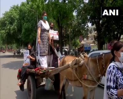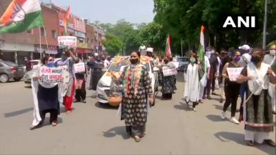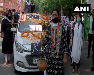 इस बीच चंडीगढ़ में तेल की बढ़ती कीमतों के विरोध करने का एक अलग और नायाब तरीका नजर आया। यहां शनिवार को चंडीगढ़ महिला कांग्रेस ने विरोध-प्रदर्शन किया।