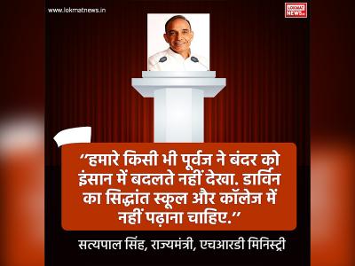 ''हमारे किसी भी पूर्वज ने बंदर को इंसान में बदलते नहीं देखा. डार्विन का सिद्धांत स्कूल और कॉलेज में नहीं पढ़ाना चाहिए.'' सत्यपाल सिंह, राज्यमंत्री, एचआरडी मिनिस्ट्री