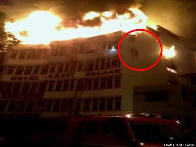 आग इतनी भीषण थी कि वहां मौजूद कुछ लोगों को जान बचाने कि लिए होटल की मंजिल से ही कूदना पड़ा।