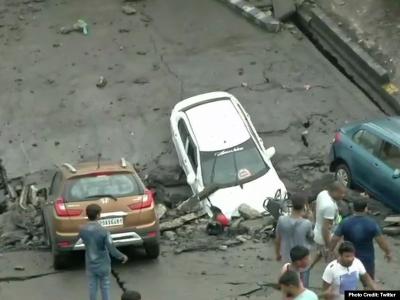 न्यूज एजेंसी एएनआई द्वारा जारी की तस्वीरों के में साफ देखा जा सकता है कि पुल के बगल कुछ निर्माण कार्य भी चल रहा है।