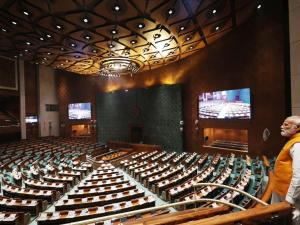 1 / 6प्रधानमंत्री नरेन्द्र मोदी ने 30 मार्च शाम नए संसद भवन का औचक दौरा किया और विभिन्न कार्यों का निरीक्षण किया तथा निर्माण श्रमिकों से बातचीत की। (फोटो- ट्विटर)2 / 6सूत्रों ने यह जानकारी दी, प्रधानमंत्री मोदी ने भवन के अंदर एक घंटे से अधिक समय बिताया।3 / 6सूत्रों ने कहा कि लोकसभा अध्यक्ष ओम बिरला के साथ मोदी ने संसद के दोनों सदनों के लिए सुविधाओं का जायजा लिया। उन्होंने कहा कि प्रधानमंत्री ने निर्माण श्रमिकों के साथ भी बातचीत की। (फोटो- ट्विटर)4 / 6नए संसद भवन का काम नवंबर तक पूरा होने की उम्मीद जताई जा रही है। (फोटो- ट्विटर)5 / 6नए संसद भवन में संविधान हॉल, सदस्यों के लिए लाउंज, पुस्तकालय, समिति कक्ष, भोजन क्षेत्र और पर्याप्त पार्किंग की सुविधा होगी। (फोटो- ट्विटर)6 / 6सोशल मीडिया पर नए संसद भवन की तस्वीरें तेजी से वायरल हो रही हैं। (फोटो- ट्विटर)