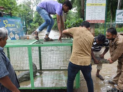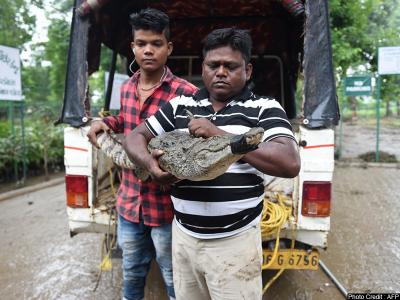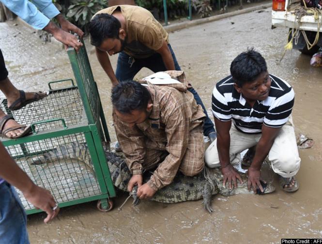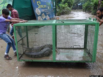 Pics: वडोदरा में बाढ़ कम हुई तो मगरमच्छों का कहर बढ़ा, अब तक 43 पकड़े गए