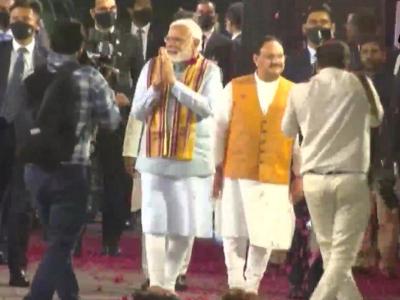प्रधानमंत्री नरेंद्र मोदी दिल्ली में भाजपा पार्टी मुख्यालय पहुंचे, कार्यकर्ताओं को किया संबोधित