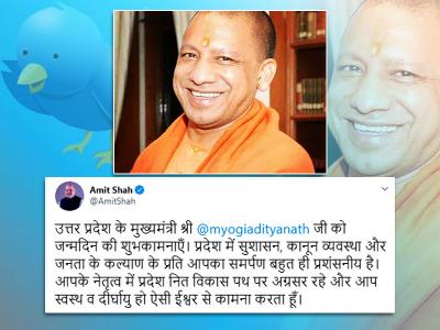 अमित शाह ने भी सीएम योगी आदित्यनाथ को जन्मदिन पर ट्विटर पर बधाई देखे हुए मैसेज लिखा है