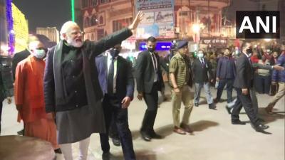 मध्यरात्रि के कुछ समय बाद एसपीजी सुरक्षा कर्मियों से घिरे प्रधानमंत्री गोदौलिया चौक के पास वाराणसी की सड़कों पर टहल रहे थे, इस दौरान उनके स्वागत के लिए मार्ग को सजाया गया था और लोग ‘‘हर हर महादेव’’ और ‘‘मोदी, मोदी’’ के नारे लगा रहे थे।